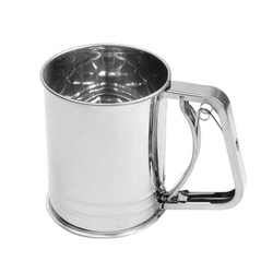 Taza de polvo de manivela de acero inoxidable para hornear, tamaño personalizado, artesanal, 2 capas, 3 tazas, colador de harina de hornear, venta al por mayor